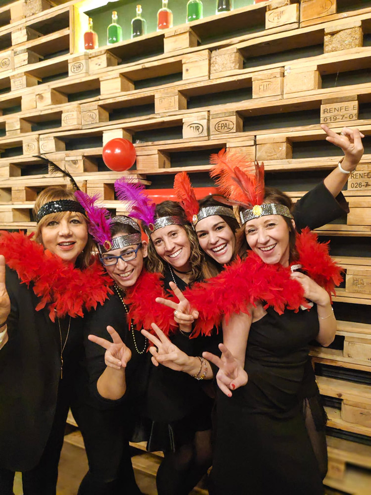 Por la tarde, ya fuera de horario laboral, todos fuimos convocados en una misma ubicación a través de WhatsApp, sin más datos... El lugar: Local Market, en Girona, donde nos esperaba el crupier de ‘Casino Royal’, un reto gastronómico en el que el póker, la ruleta y el blackjack nos sirvieron para realizar apuestas sobre vinos, quesos y aromas. Todo ello, mientras vestíamos glamur: trajes, pajaritas, plumas, perlas… Diversión y lujo gastronómico. En las apuestas, unos acertamos más y otros menos; hubo quienes se arruinaron y sólo quedó en pie un equipo de ganadoras.