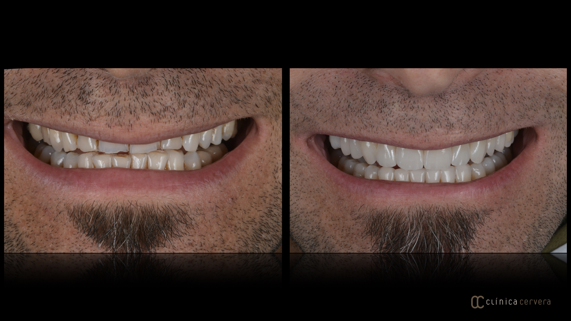 Vam fer un estudi per valorar el tractament i vam acordar un tractament conservador amb ortodòncia plàstica de 10 mesos i restauracions dels desgastos. Finalment laminats de les dents superiors per donar una estètica més natural i canvi de ponts ceràmics antics a les peces posteriors.