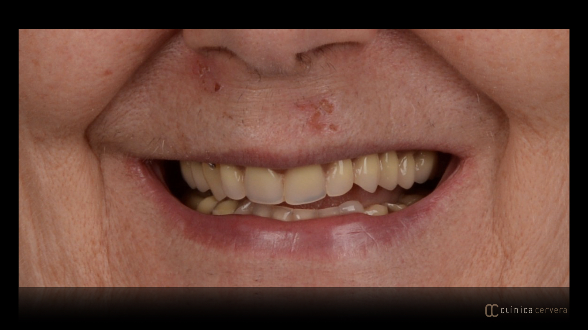 Después de la colocación de 5 implantes superiores y 3 implantes inferiores se diseñaron dos prótesis completas nuevas pero con la particularidad de ir ancladas a unos aditamientos conectados a estos implantes. Este anclaje le proporciona a la prótesis mejor apoyo, estabilidad y sobretodo ofreciéndole a la paciente total comodidad a la hora del habla y la masticación.
