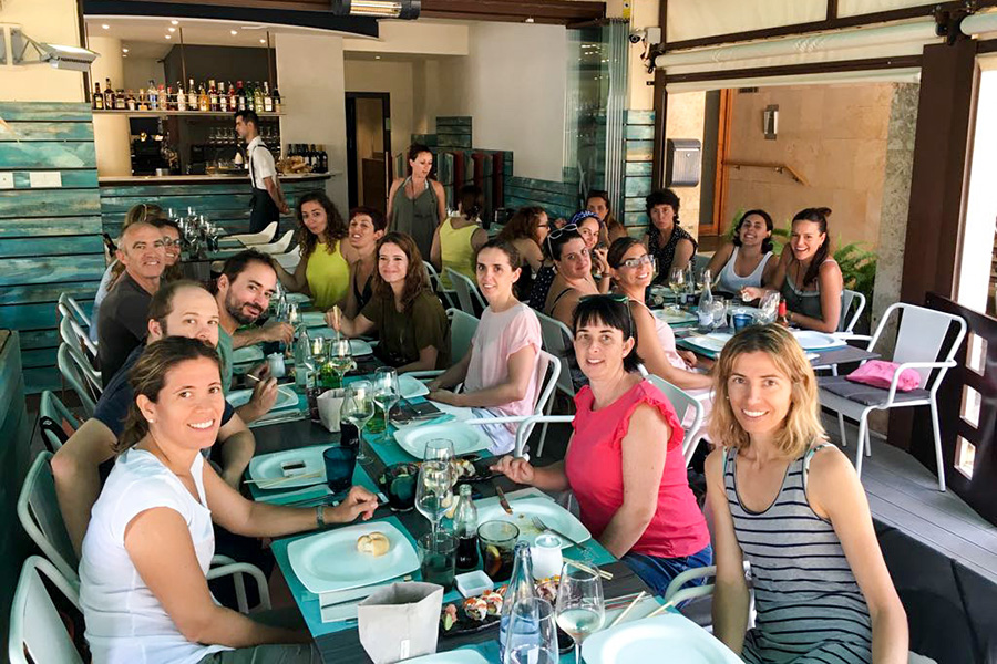 Una vez en la cala pudimos recuperar fuerzas con una buena comida y con una sobremesa en la que no faltó eso que tanto nos gusta cuidar: las sonrisas. Tampoco faltó el agradecimiento por esta oportunidad que nos ha permitido conocernos aún mejor y aumentar la confianza y la buena comunicación entre todos.